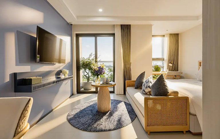 – Thiết kế giao hòa: Sự khác biệt nằm ở khả năng xóa nhòa khoảng cách giữa trong nhà và ngoài trời. Những ban công rộng cửa kính lớn giúp đón trọn hơi thở của biển cả, mang lại cảm giác nghỉ dưỡng trị liệu mỗi ngày.
