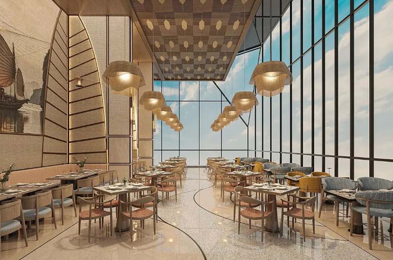 – Tầng mái xa hoa: Đây là nơi cảm xúc được thăng hoa. Các khu Skybar, nhà hàng cao cấp được bố trí trên tầng thượng không chỉ phục vụ nhu cầu ăn uống mà còn mở ra tầm nhìn 360 độ ngắm trọn kỳ quan Vịnh Hạ Long.