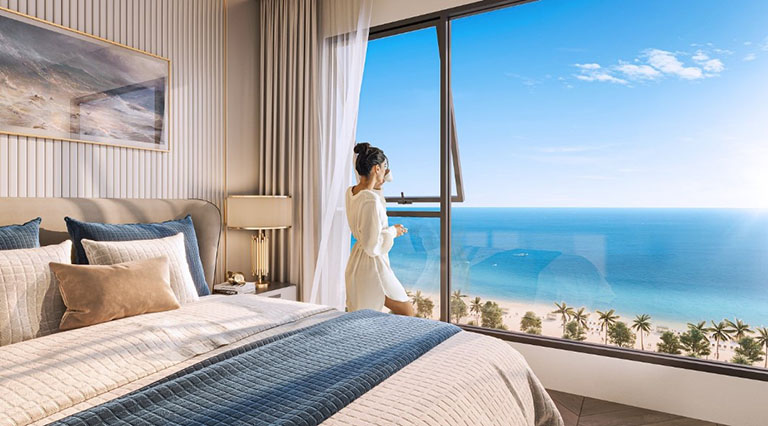 Đây là dòng sản phẩm “hút hàng” nhất đối với những ai đang tìm kiếm cơ hội kinh doanh lưu trú du lịch. Với diện tích được tối ưu hóa theo phong cách tối giản, căn hộ Studio tạo ra một không gian liền mạch, thông thoáng. Ban công hướng biển rộng mở không chỉ mang gió trời vào phòng mà còn giúp diện tích thực tế như được nới rộng gấp bội. Đây là mô hình nghỉ dưỡng cá nhân lý tưởng, vừa đủ riêng tư, vừa cực kỳ tiện nghi.