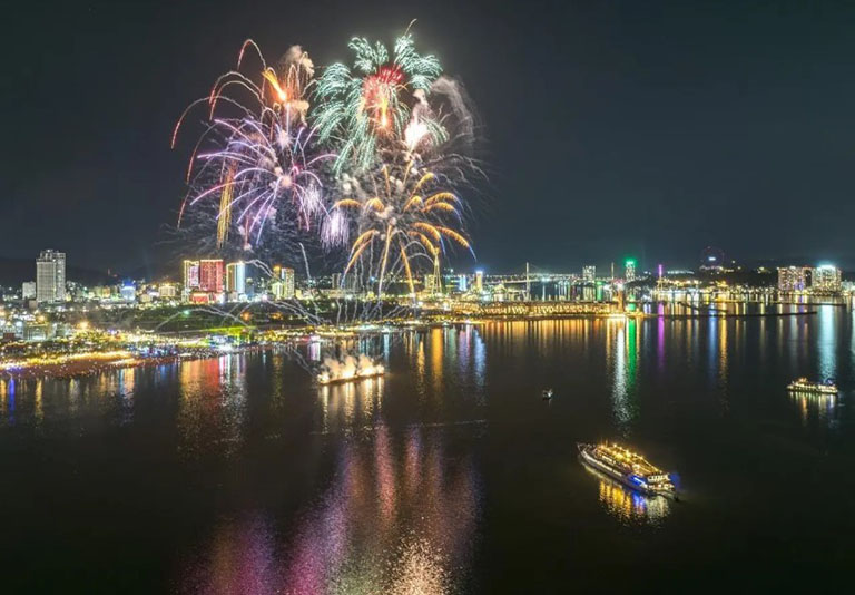 Những màn trình diễn ánh sáng lung linh phản chiếu trên mặt nước vịnh Hạ Long vào mỗi dịp lễ hội mang lại cảm xúc kỳ diệu. Tiếng pháo hoa vang vọng giữa không gian di sản tạo nên một bản hòa tấu tuyệt mỹ, biến bầu trời Bãi Cháy thành một bức tranh nghệ thuật sống động.