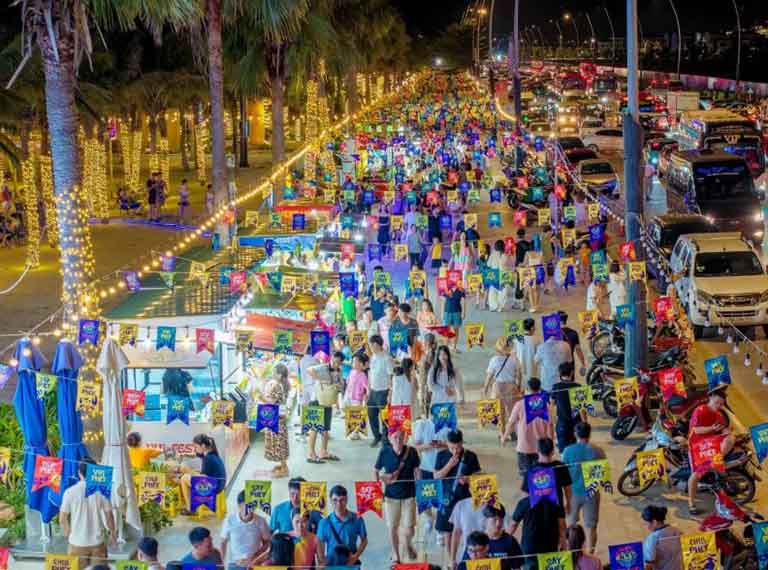 Khi mặt trời lặn, nhịp sống tại Sun Elite City không hề lắng xuống mà chuyển mình sang một chương rực rỡ hơn tại chợ đêm VUI-Fest. Đây chính là “trái tim” của mô hình kinh tế đêm, nơi hội tụ của tinh hoa ẩm thực đường phố và những gian hàng mua sắm sầm uất. Không chỉ có ăn và mua, VUI-Fest còn là một sân khấu ngoài trời khổng lồ với các show diễn nghệ thuật đường phố ngẫu hứng, từ âm nhạc hiện đại đến các màn trình diễn xiếc đầy kịch tính, tạo nên một bầu không khí lễ hội tràn đầy năng lượng, kéo dài trải nghiệm của du khách đến tận đêm khuya.